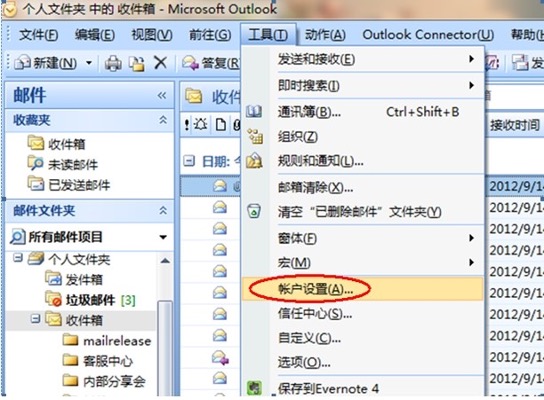 1、打开Outlook软件,点击“工具”选择“帐户设置”选项。