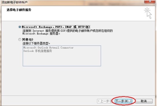 4、选择internet电子邮件,然后点击“下一步”继续。