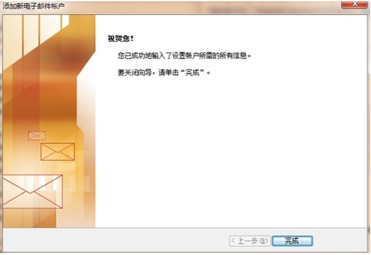 7、单击“完成”保存设置。此时您已设置完毕,可以开始进行邮件的收发了!