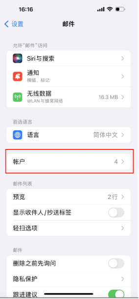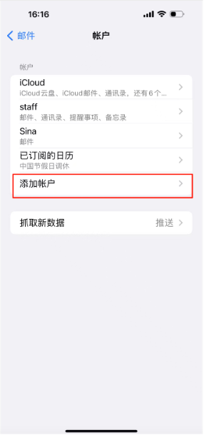 首先进入iphone的“设置”,选择“邮件”-“账户”-“添加账户” –“其他”